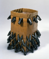 Gail Tremblay, Basket, ca. 1990, filmstock and metallic thread, Gift of Lillian Pitt, © artist or other rights holder, 93.58.15